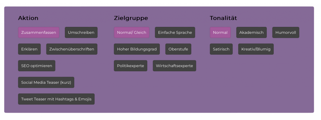 Ermöglicht die Erstellung von Texten jeglicher Form durch KI-Technologie.
